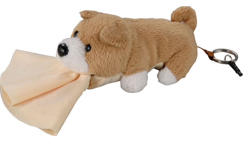 ・口の中からメガネ拭きクロスが出て、しっぽを引くとスッポリ収まります!(ねこはお尻からクロスが出ます)