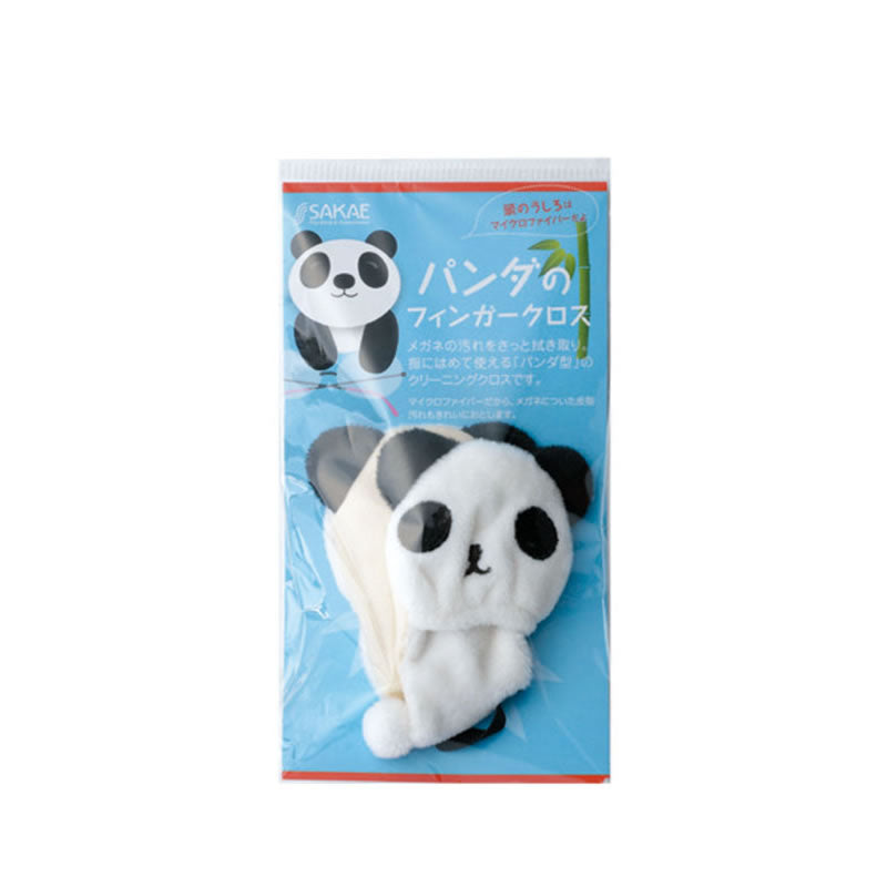 2頭のパンダがメガネをキレイにしてくれるマイクロファイバーのフィンガークロスです。